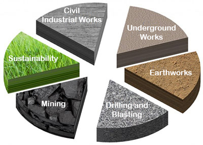 Underground works, building road, railway and mining tunnels.